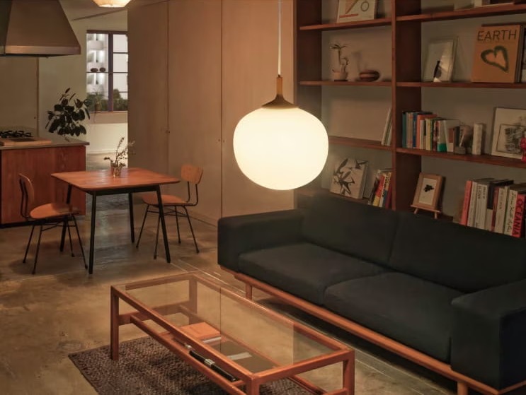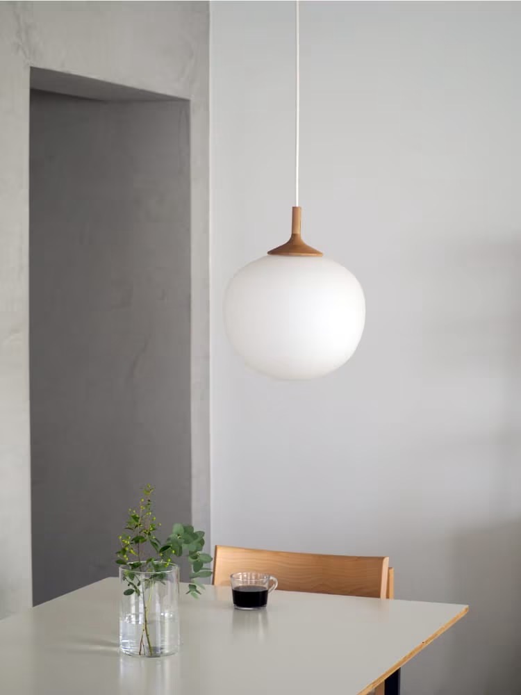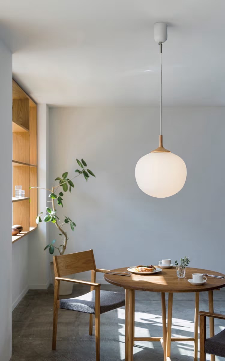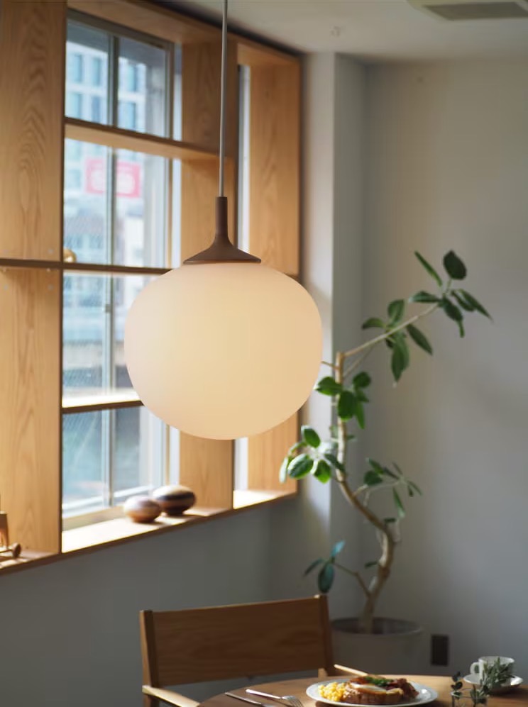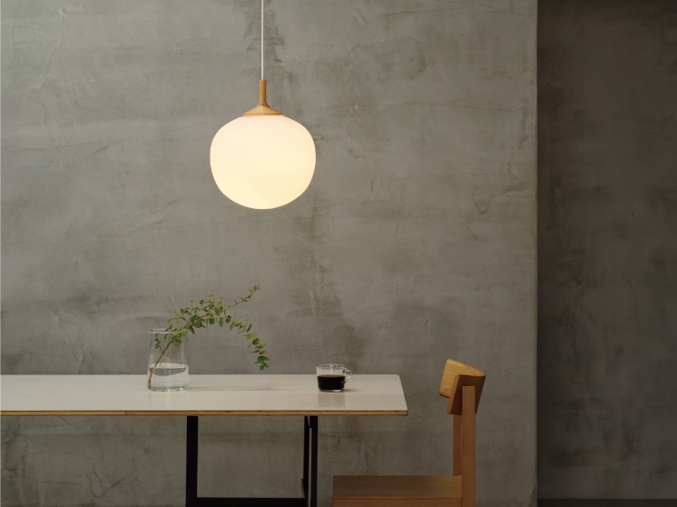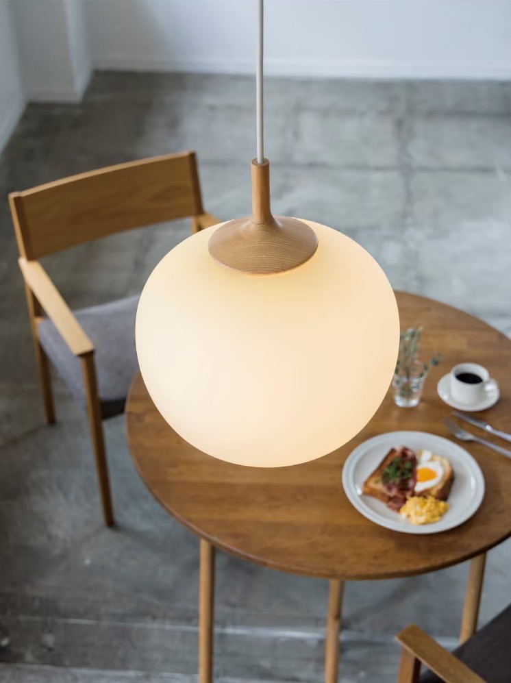 素朴なあかりを広げてくれるペンダントライト。丁寧に削り出したウッドを添えることで、