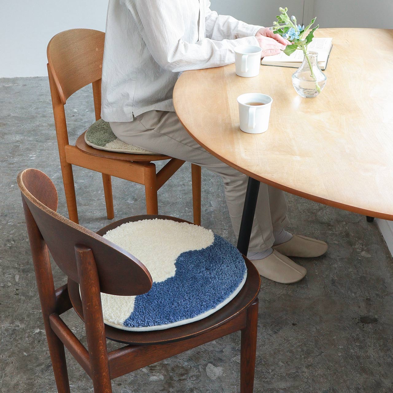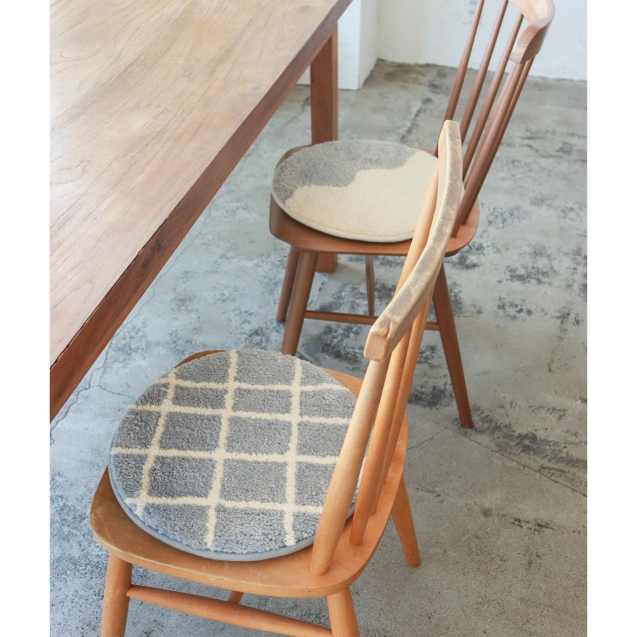 グッドデザインな丸型のチェアパッド。
