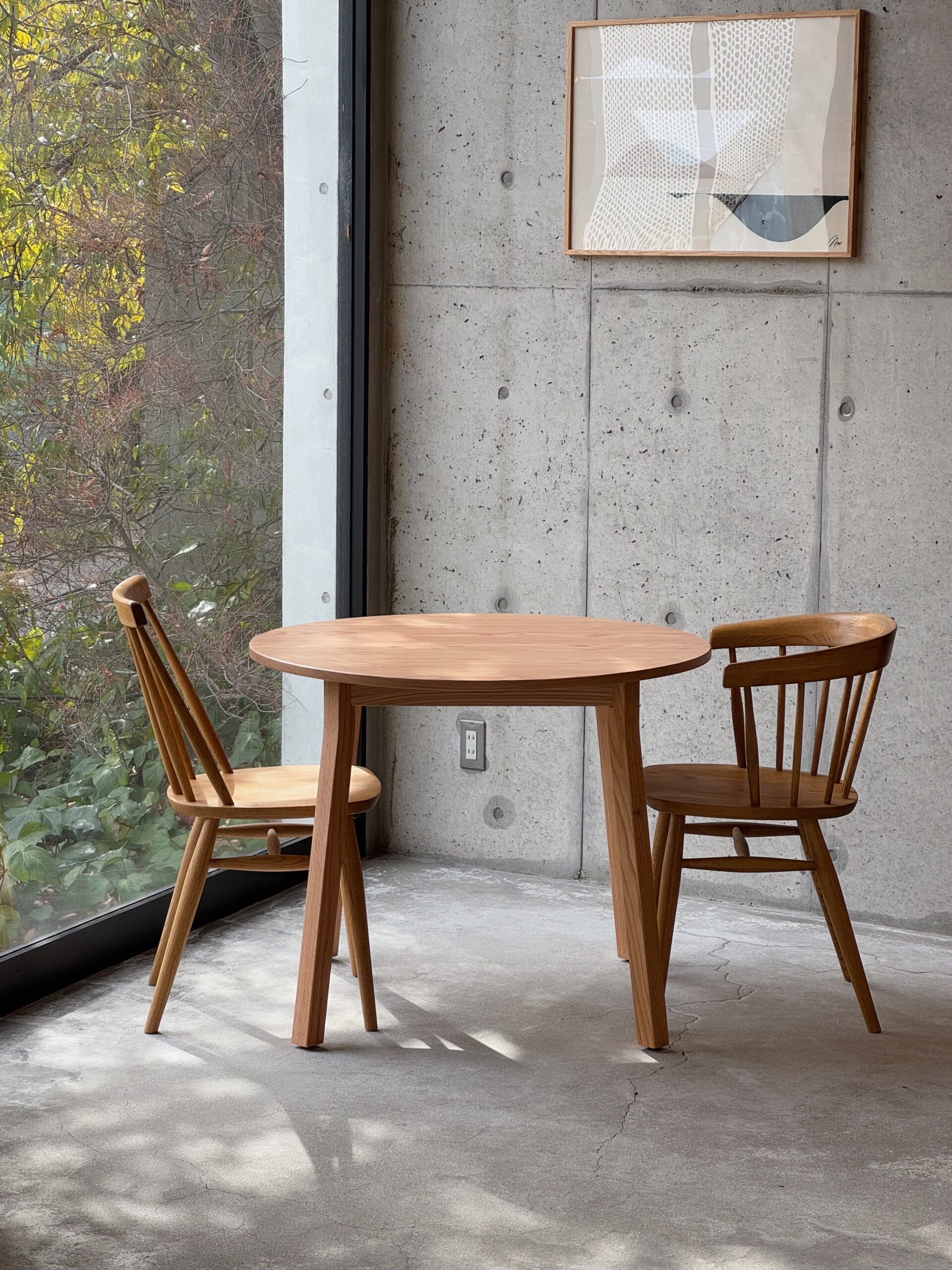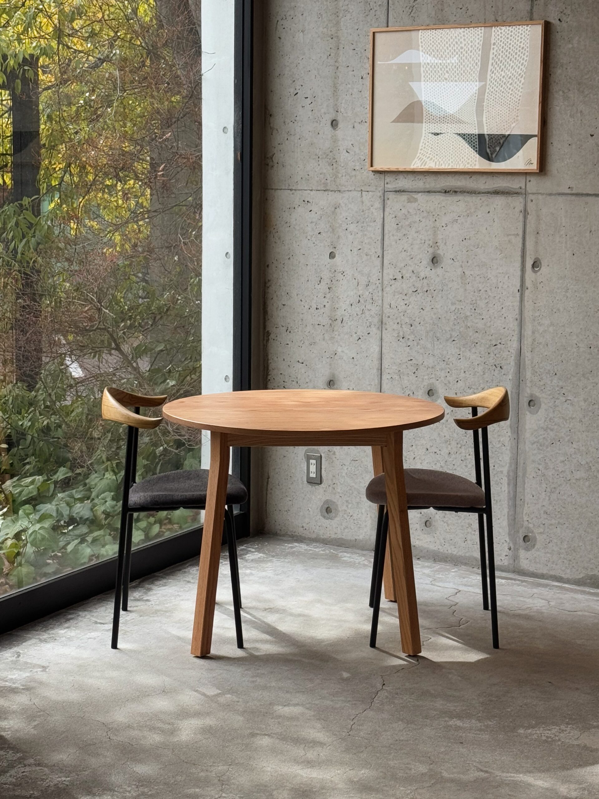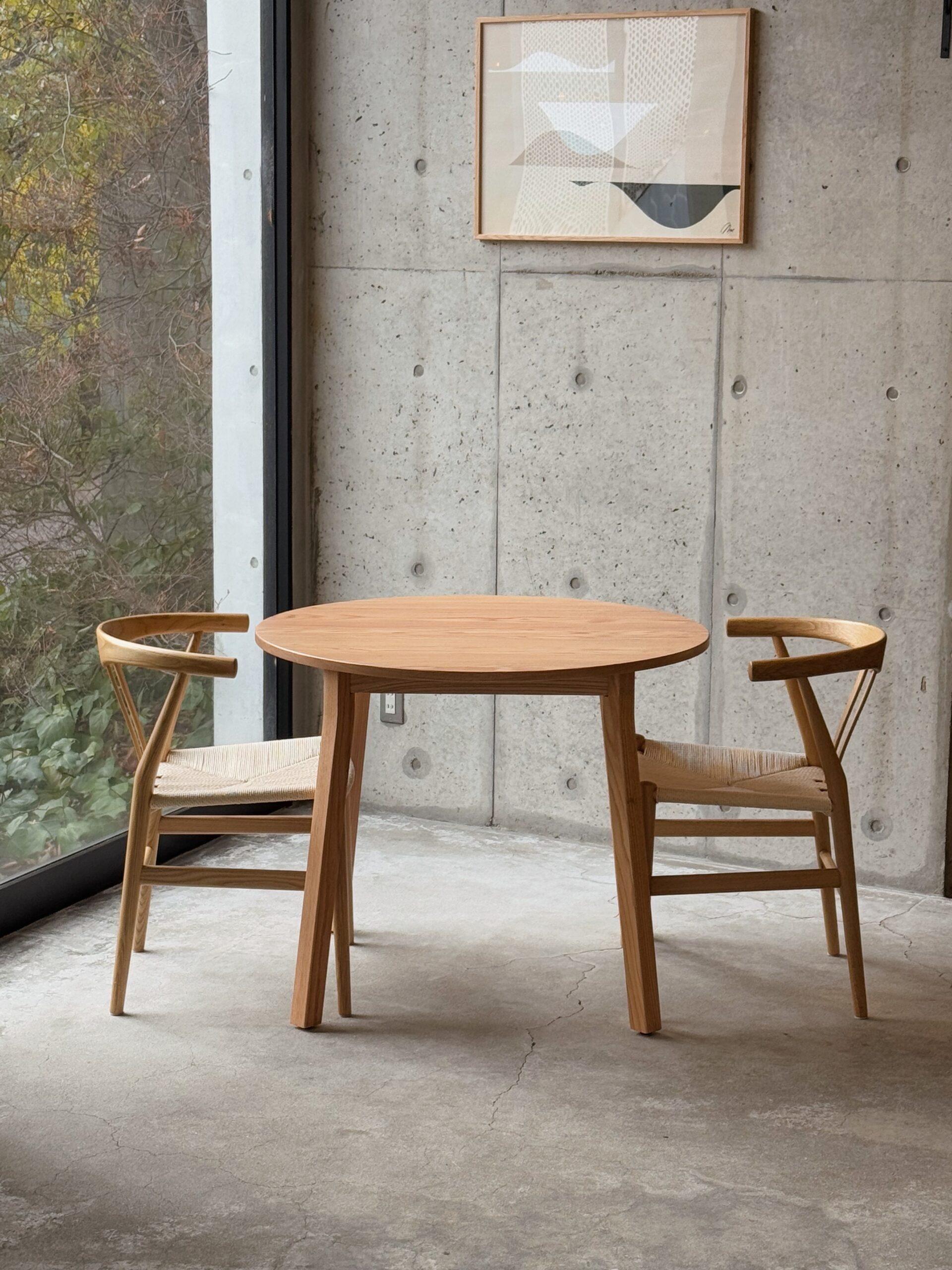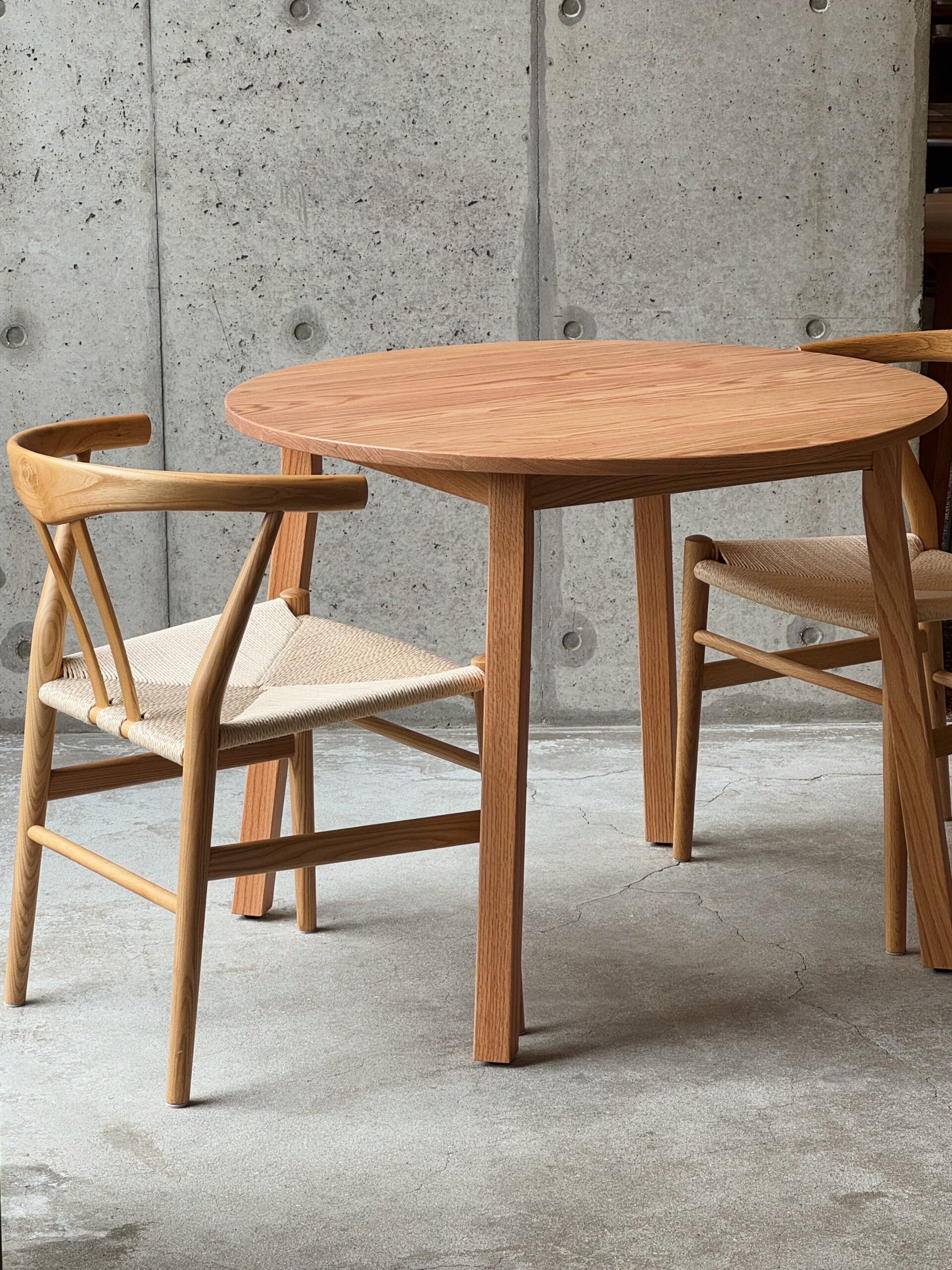 - 無垢材のラウンドテーブル