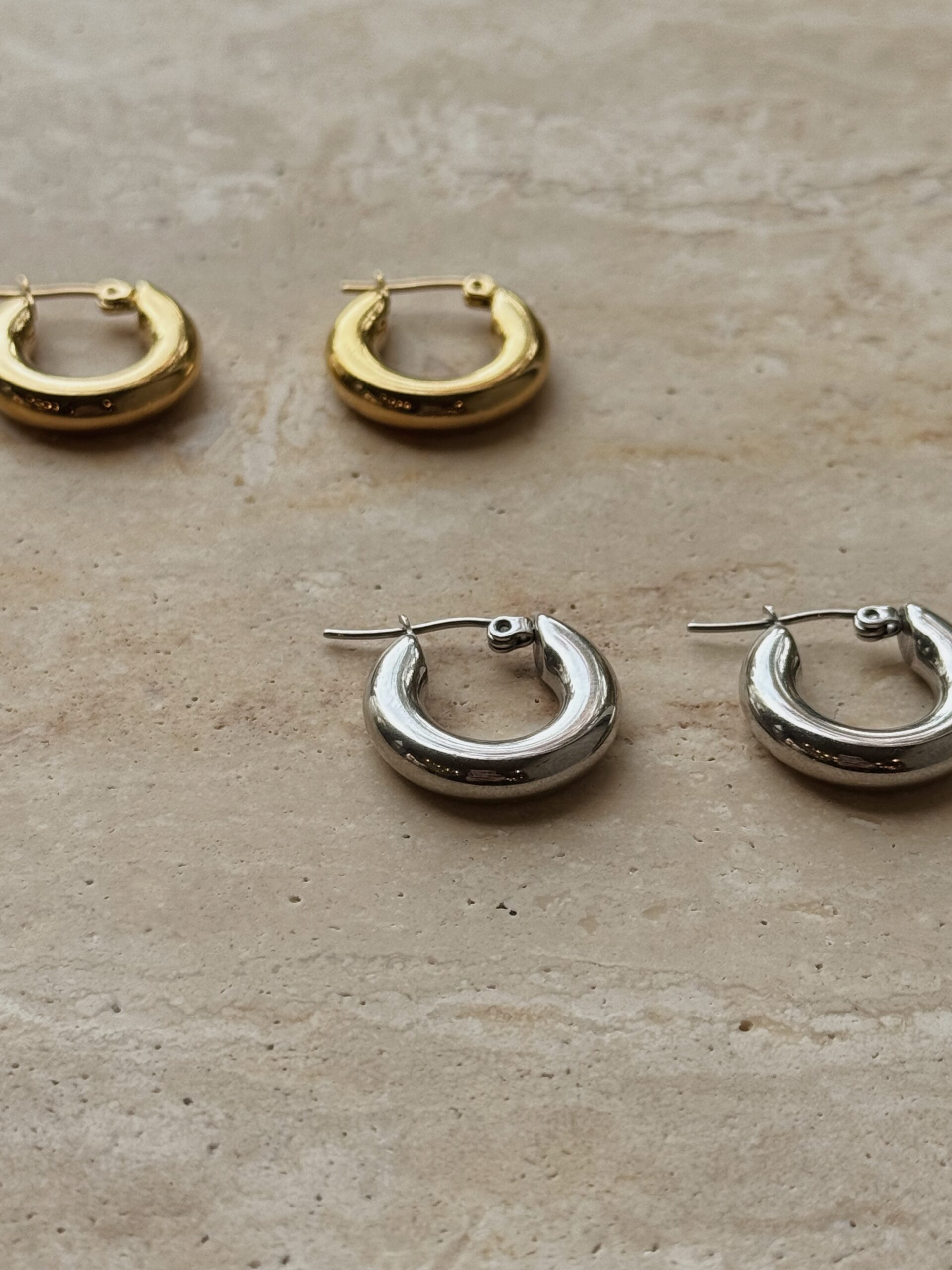 太めのフープがスタイリングのポイントになり
