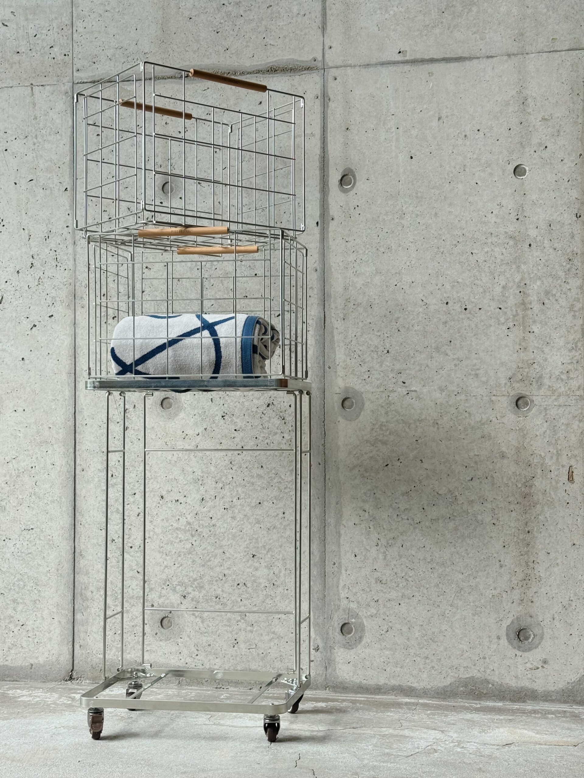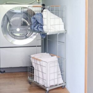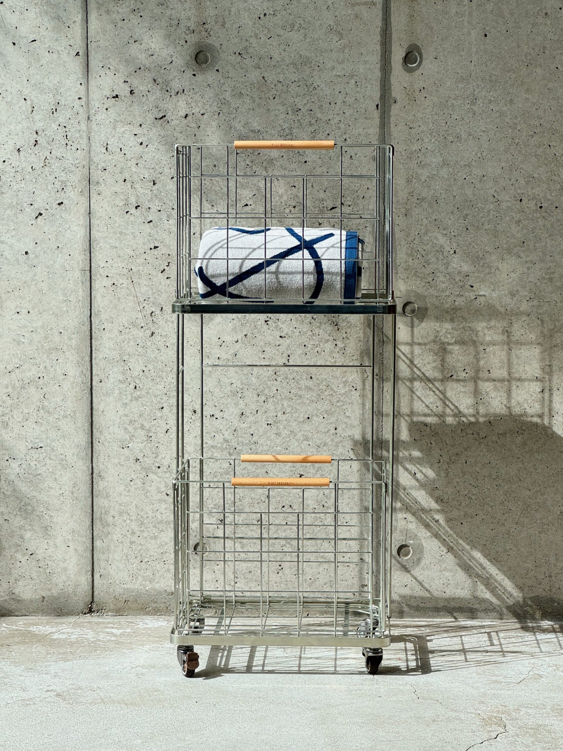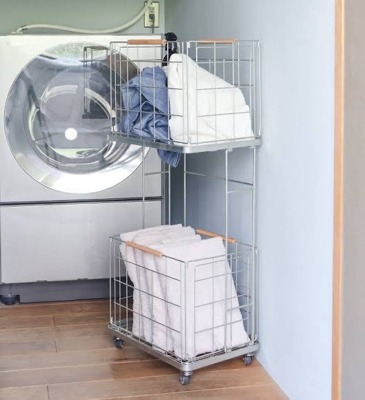 THEカッコいい、2段式のランドリーワゴン。容量約30Lのバスケットが2つ付いており、