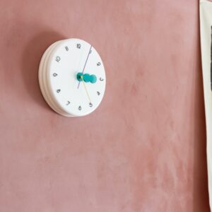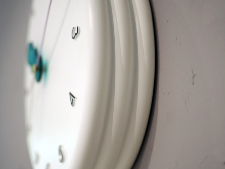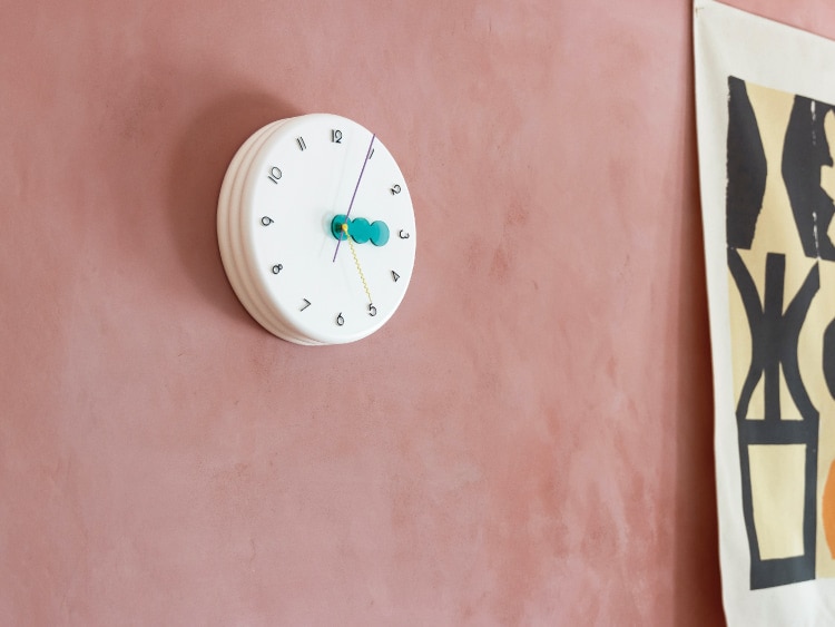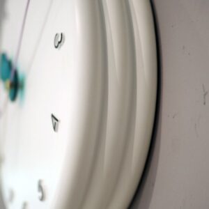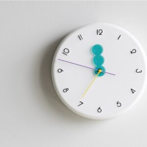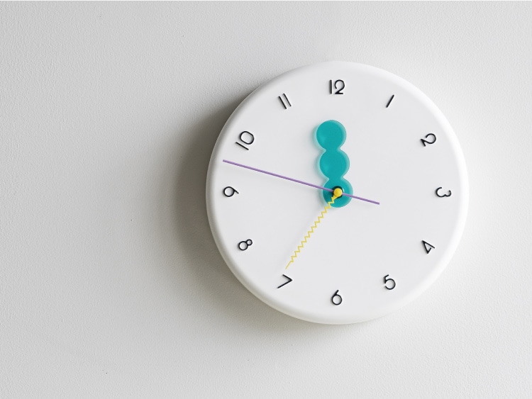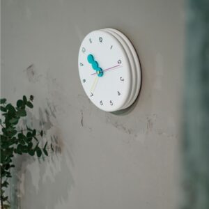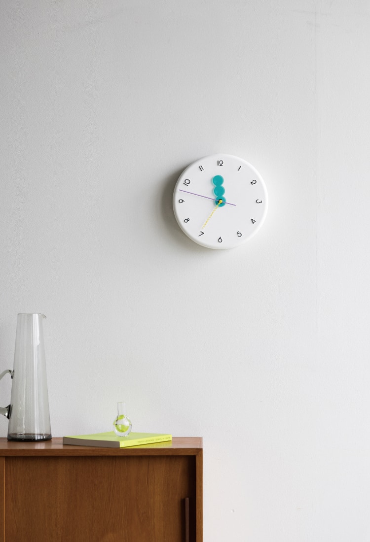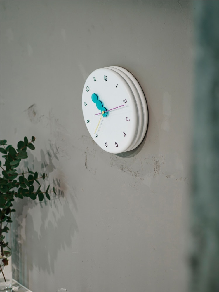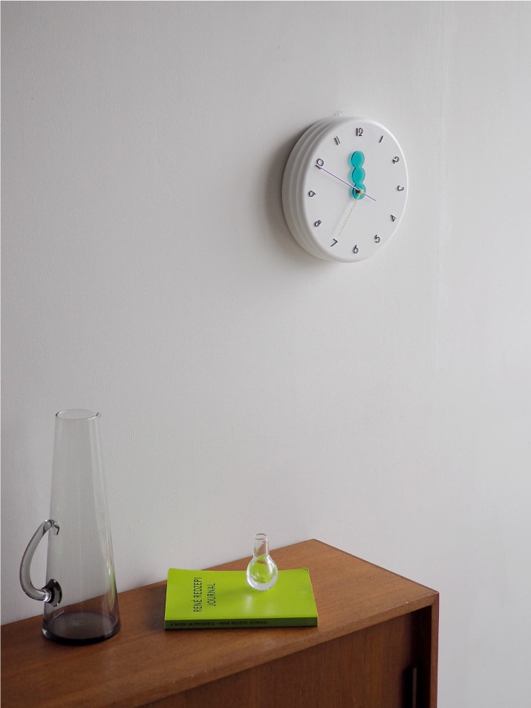 レトロポップな装いの wall clock。どの角度から見ても