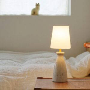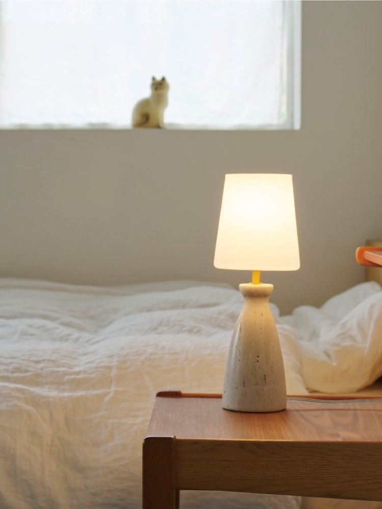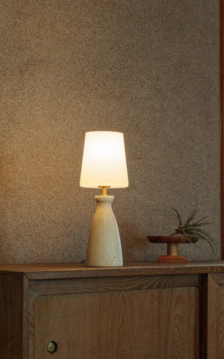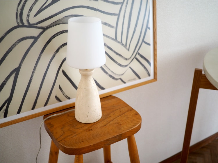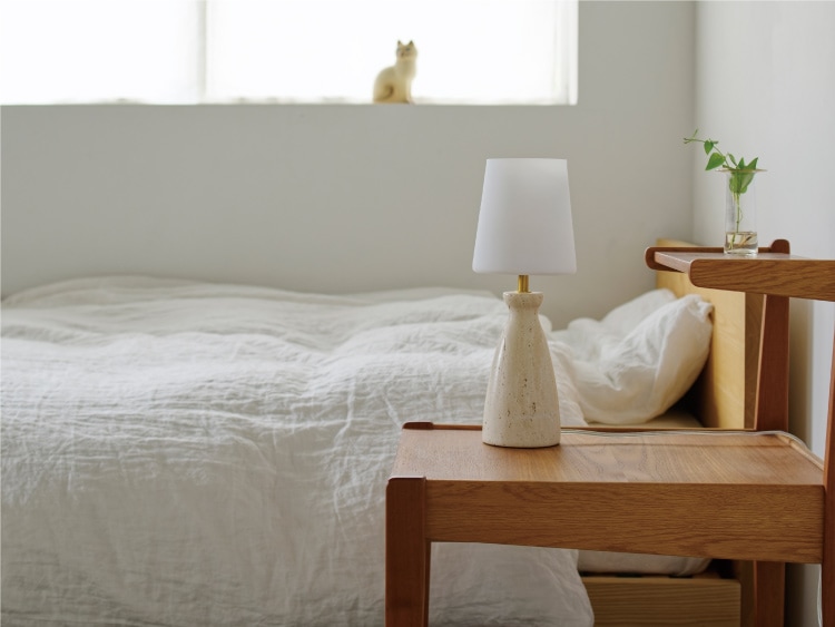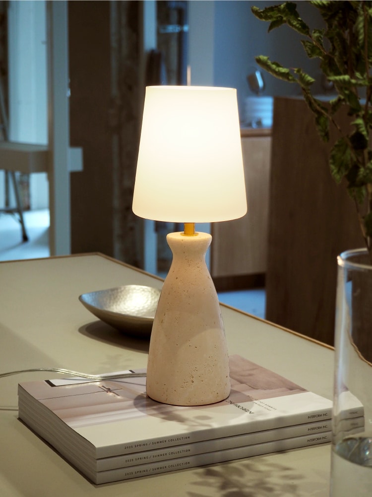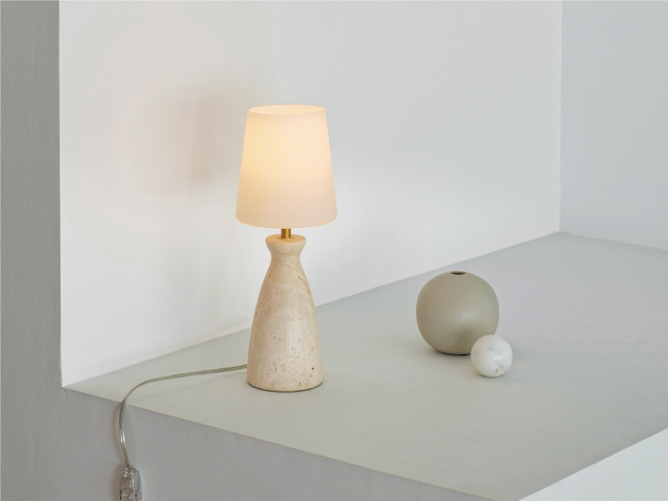 佇まいそのものが美しい照明。大理石(トラバーチン)を